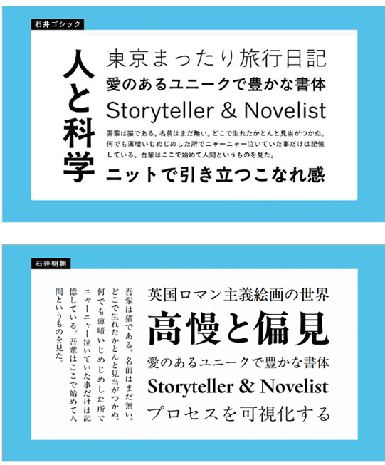 名稱中帶有『石井』的字型,是以對日本平面設計產生重大影響的寫研照相打字機字體為基礎所設計的字型。